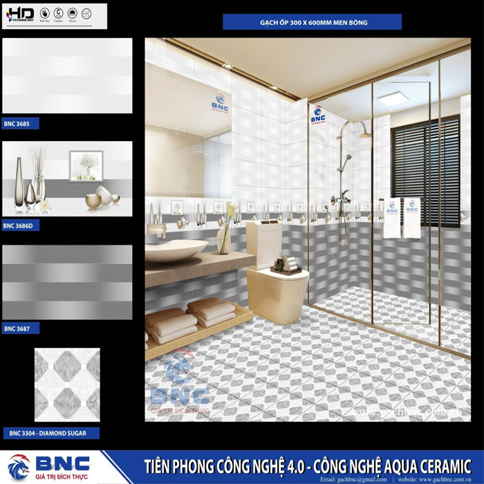 Gạch ốp tường BNC 30x60cm men bóng (Glossy). Tiên phong trong công nghệ 4.0 - Công nghệ AQUA CERAMIC